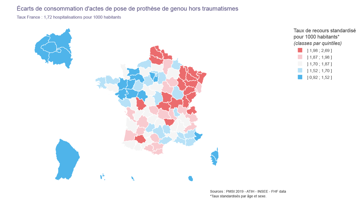 L’Assurance maladie estime à 25 à 30% le nombre d’examens ou actes non pertinents ou de non qualité. L’examen des différences de consommation par territoire pour une même typologie d’acte conduit à s’interroger sur des écarts pouvant aller de 1 à plus de 3 entre départements parfois limitrophes. Taux de non-recours, surconsommation, variations de pratiques : la question de l’adéquation de la dispensation d’actes médicaux avec les besoins du patient mérite une réflexion d’ensemble.